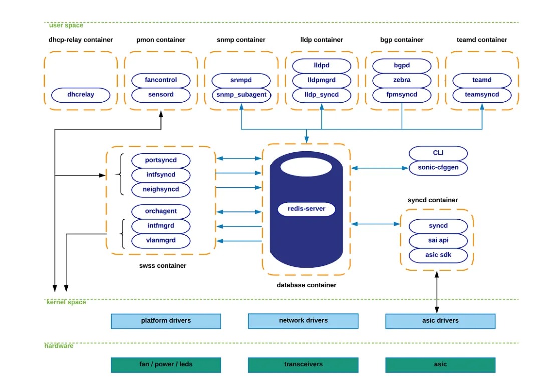 SONiC(Software for Open Networking in the Cloud)是微软为Azure开发的网络操作系统,2016年开源后成为云服务商构建开放网络的事实标准。其核心创新在于: