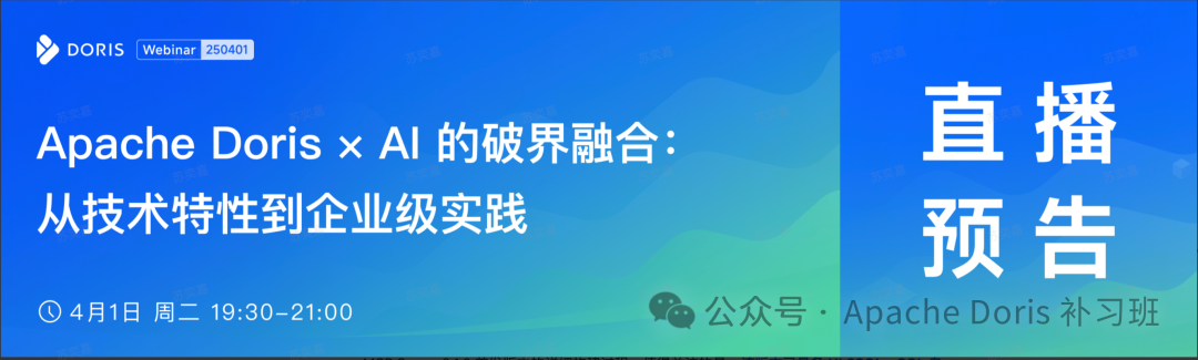 本文分享自 Apache Doris 补习班 微信公众号,前往查看