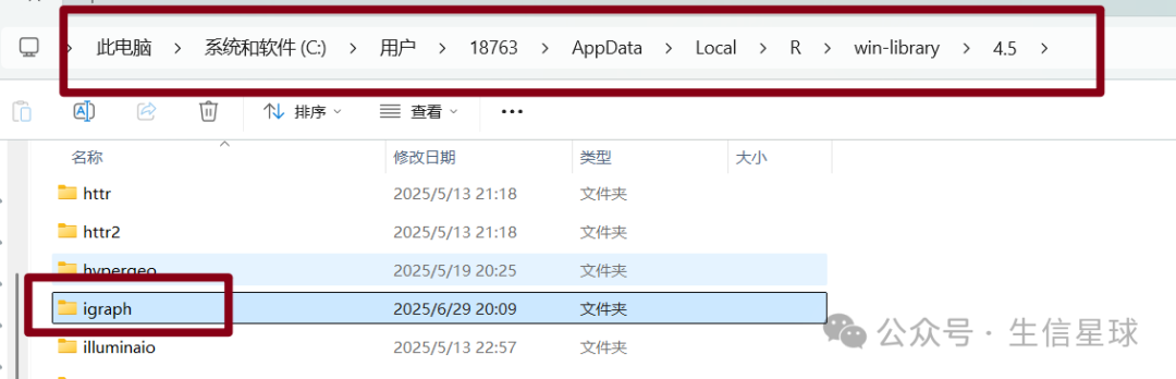 打开第一个路径的文件夹,把我提供的igraph.zip解压,解压得到的igraph文件夹复制到上面的路径。