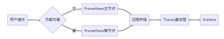 图解:采用Thanos实现全局视图,配合远程存储解决Prometheus本地存储限制,确保99.99%可用性。