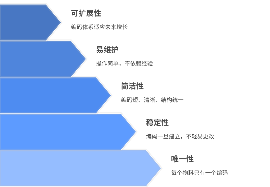 ① 唯一性:一个物料,只能有一个编码