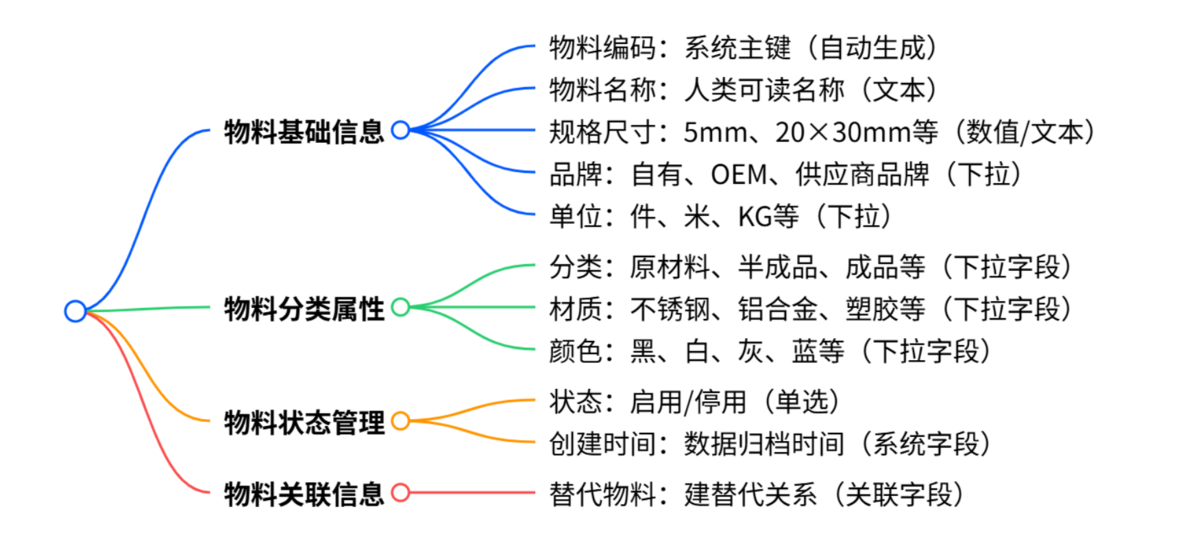 2. 物料属性字段:信息要拆开写,别塞编码里