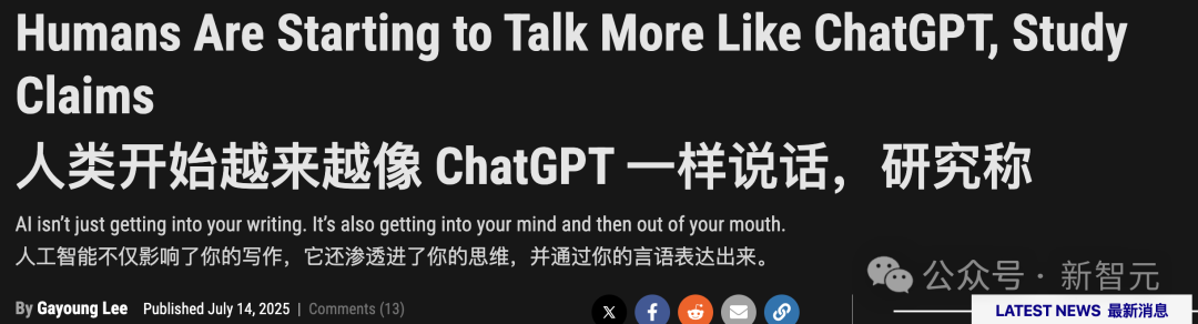 最近,越来越多的媒体发现:说话的方式,越来越像ChatGPT了!