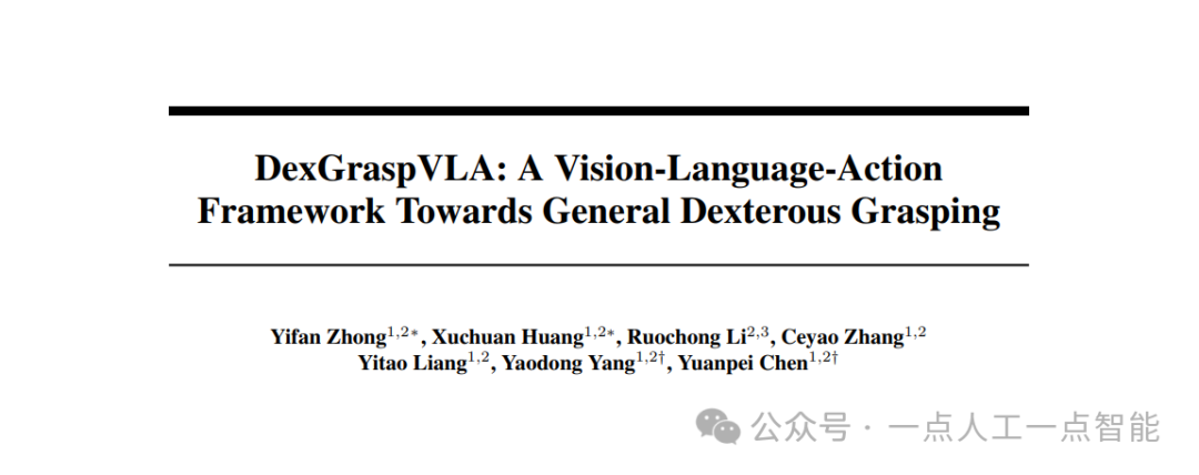 导读:文章介绍了灵巧抓取在机器人学中的基础地位与现有研究的局限性,并详细剖析了DexGraspVLA框架的层次化架构设计理念与核心创新点。通过对方法部分的深度解读,揭示了该研究如何通过领域不变表示转换和扩散策略实现泛化能力突破。实验分析部分展示了该方法在多样化场景下的卓越性能,最后讨论了研究的局限性与未来发展方向。