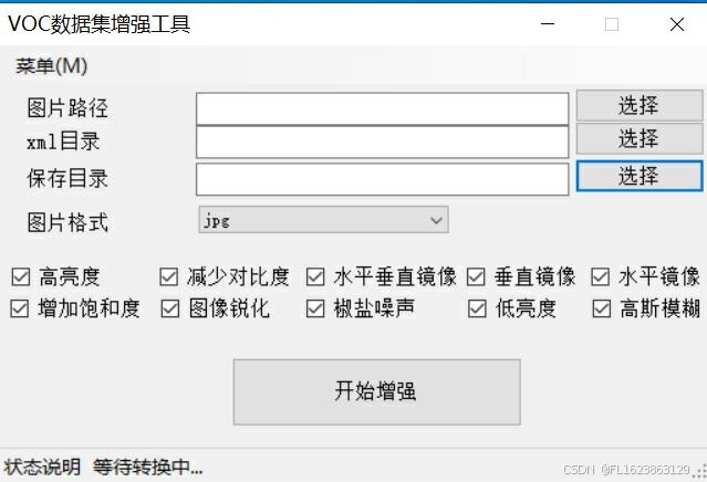欢迎使用VOC数据库增强工具!本工具旨在帮助您对VOC数据集中的图片进行多种增强处理,以提升模型训练精度和模型识别能力和适应不同的应用需求。以下是使用本工具的详细步骤:首先获取工具firc.lanzn.com/iNrsF2mzg93i 一、打开软件