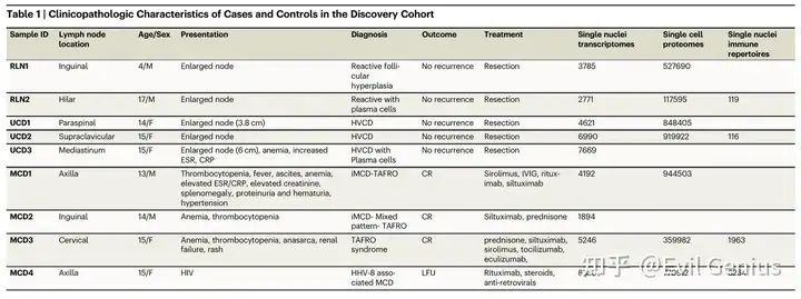 为阐明Castleman病(CD)的细胞与分子机制,我们通过发现队列(n=9例)和验证队列(n=13例)对单中心型CD、特发性多中心型CD、HHV8相关MCD及反应性淋巴结进行了空间蛋白质组与转录组联合分析。