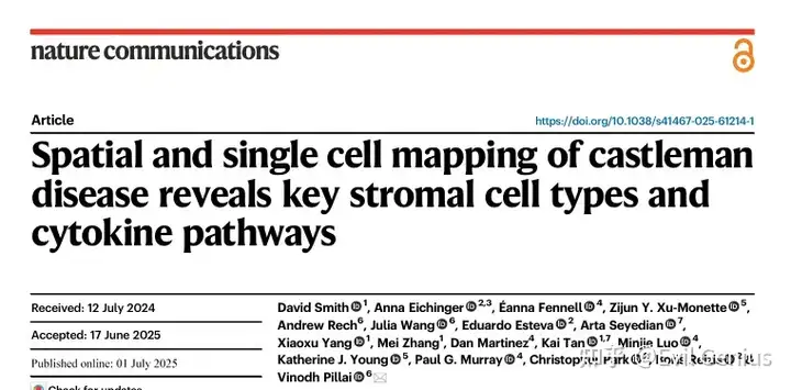 研究提示:CD的特异性微环境通过重构基质-免疫细胞互作网络,破坏正常淋巴结功能架构。这种由局部细胞空间邻近性驱动的异常互作,可能是CD发病的核心环节。