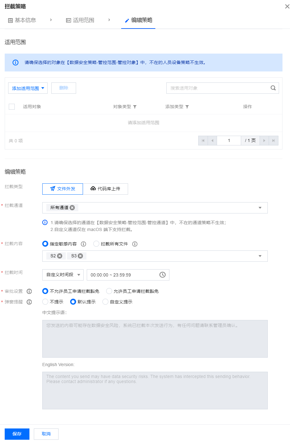 可以配置拦截策略禁止文件外发。必须申请才能豁免。