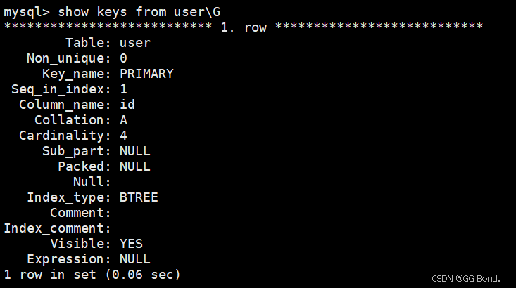 create table user1(id int primary key, name varchar(30));-- 在创建表的最后,指定某列或某几列为主键索引