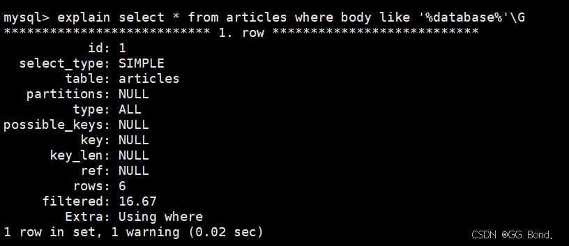 ('MySQL Security','When configured properly, MySQL ...');如果使用如下查询方式,虽然查询出数据,但是没有使用到全文索引