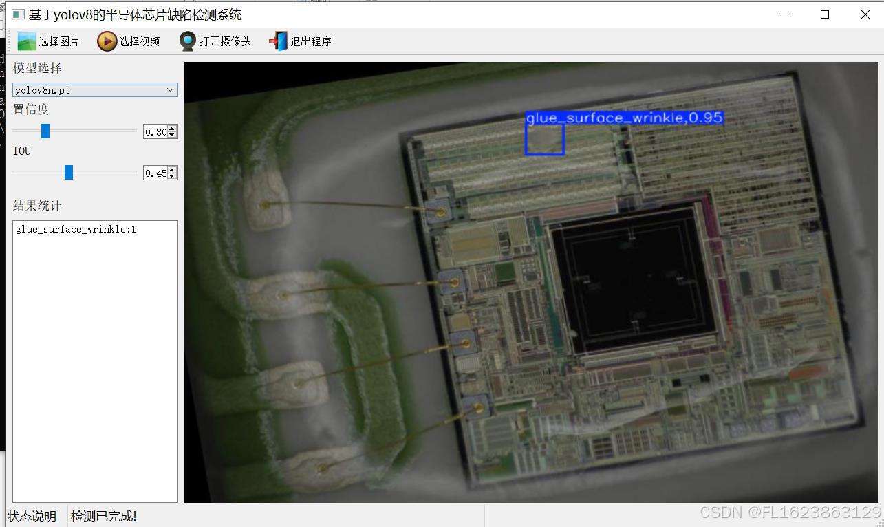 基于YOLOv8的半导体芯片缺陷检测系统是一种高效、准确的自动化解决方案,专为半导体制造业设计,用于检测芯片制造过程中的多种缺陷。该系统利用YOLOv8深度学习模型,结合先进的图像处理技术,能够实时识别和分类芯片表面的缺陷,包括胶面起皱(glue_surface_wrinkle)、芯片划痕(chip_scratch)、铝线键合断裂(aluminum_wire_bonding_broken)、金线键合断裂(gold_wire_bonding_broken)以及芯片损伤(chip_injury)。