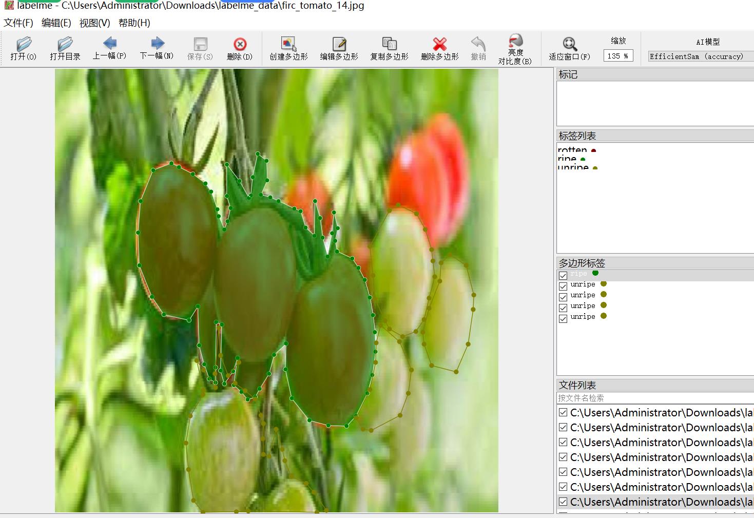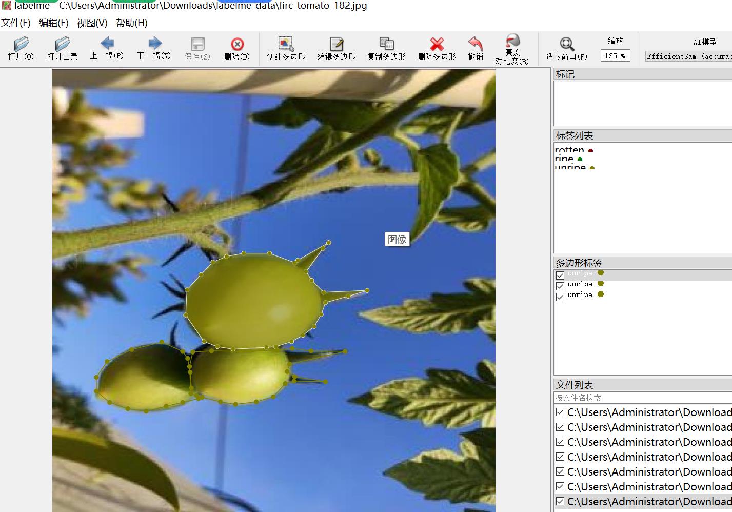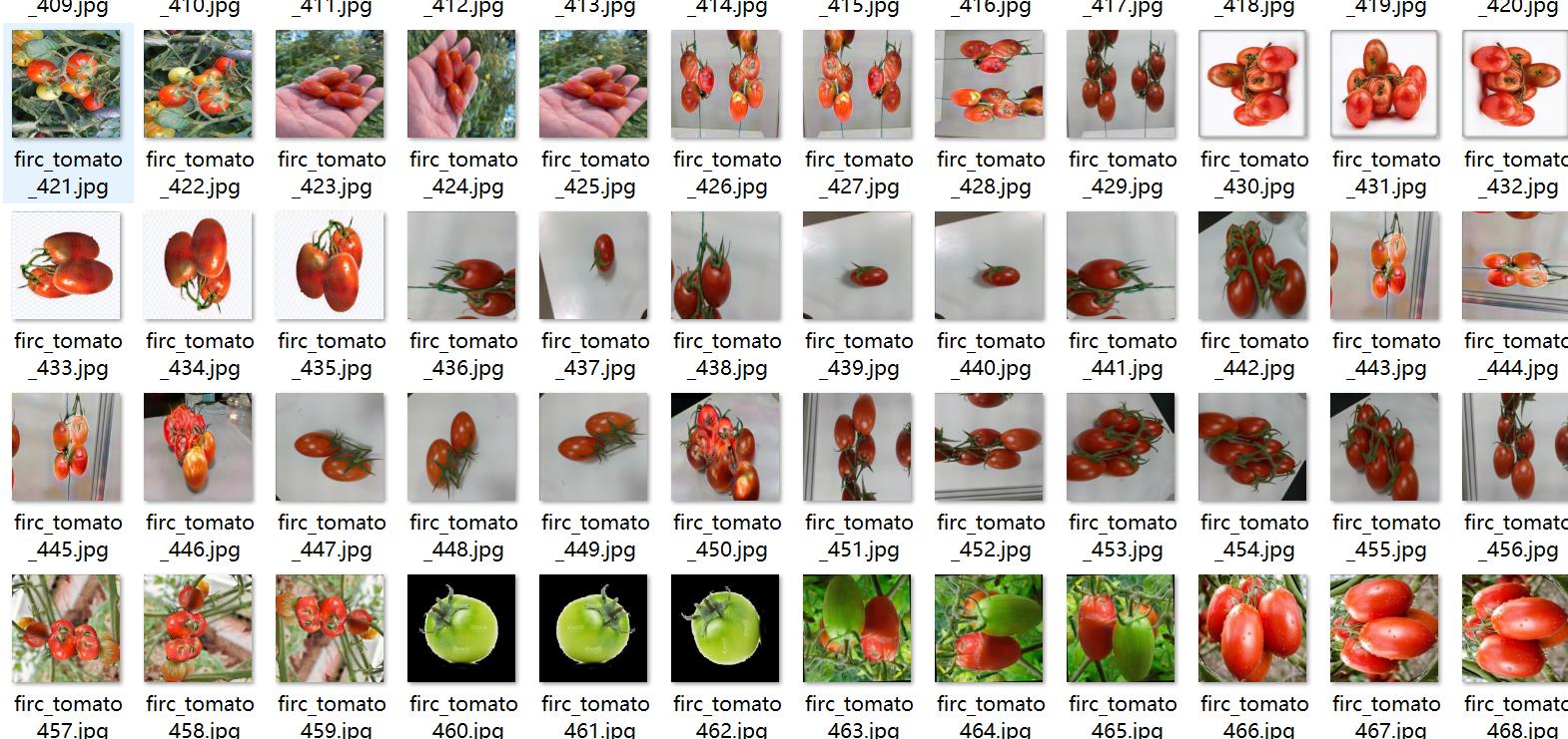 数据集中有部分增强图片,部分西红柿挨在一起都分割为一个区域