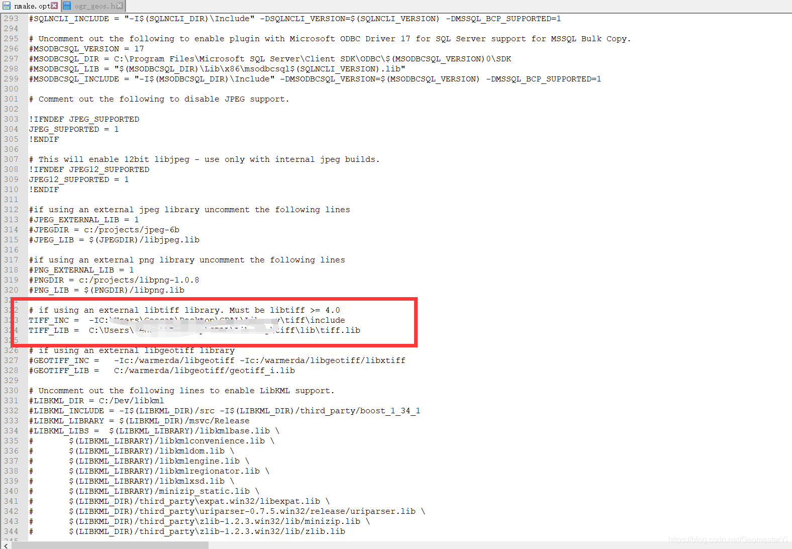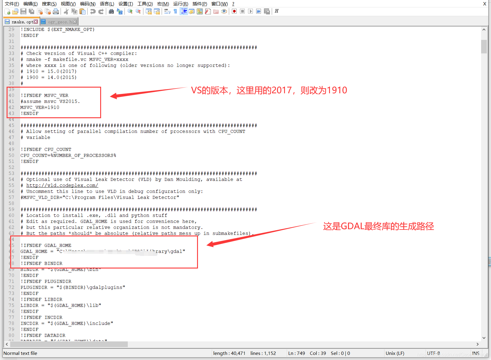 修改nmake.opt文件 这个文件其实就是nmake命令的配置文件。其中有一些地方需要修改,如下面的几张图里面的内容: