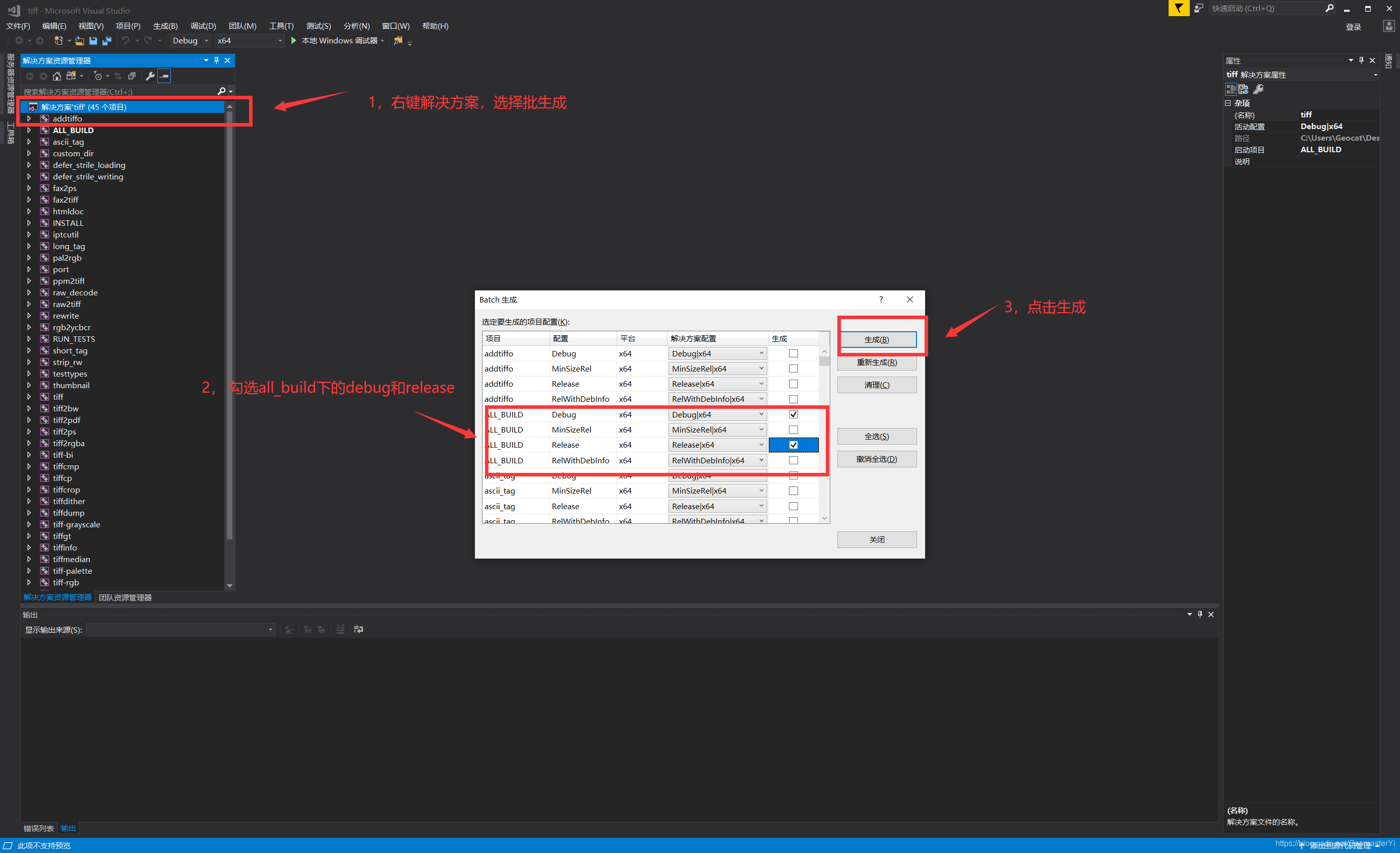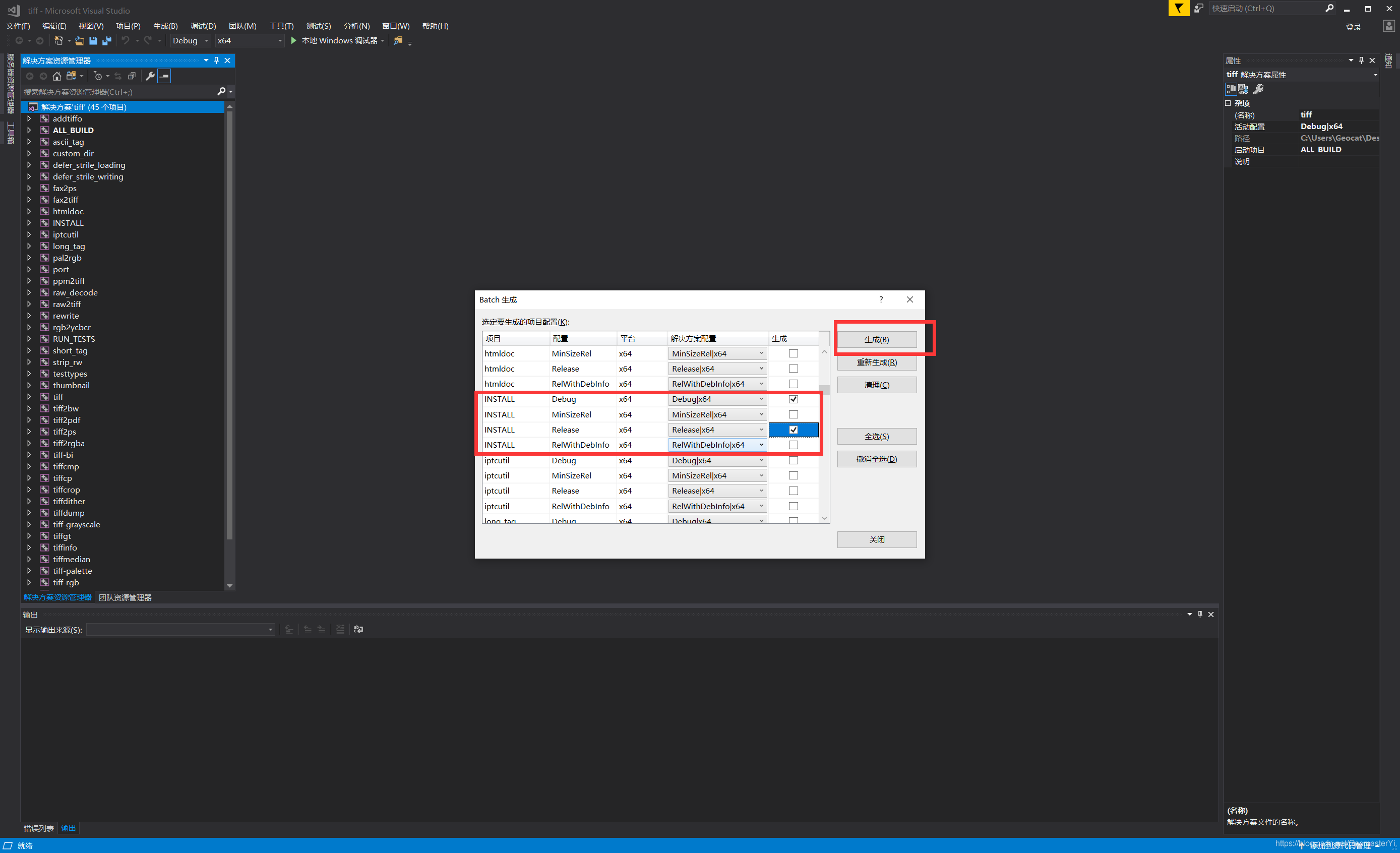 选择用VS2017打开tiff.sln,然后进行如下两步: