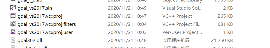 命令如下:generate_vcxproj 15.0 64 gdal_vs2017,这个命令是源码自带的Windows批处理命令,用于生成vs的项目文件 命令结束之后,会在源码目录下生成以下文件: