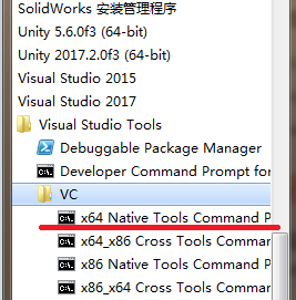 以管理员身份运行x64 Native Tools Command Prompt for VS 2017(VS2017的X64的本机工具命令提示) 位置:键盘Win(或者桌面"开始"按钮)——所有程序——Visual Studio 2017——Visual Studio Tools——VC——x64 Native Tools Command Prompt for VS 2017