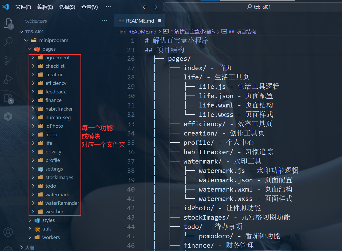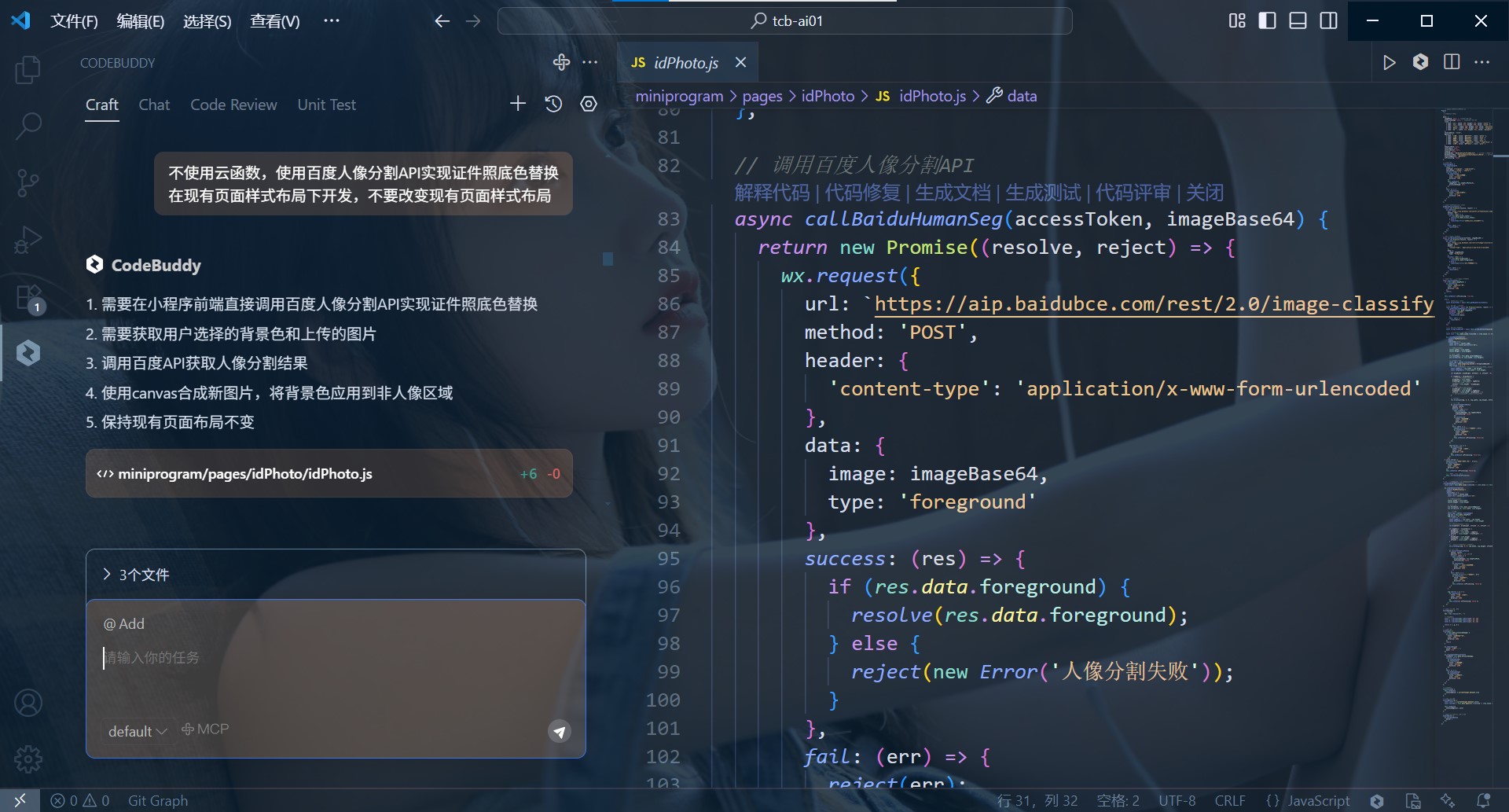 上述就是使用CloudBase AI ToolKit开发的一些准备工作。最后再来说一下我这个小程序的概况吧,作为一个工具类小程序,很多功能其实都能靠前端+微信本地储存实现,不用怎么依赖后端,所以,基本上没用到云开发相关的功能,如云函数云数据库等,但是整体用下来,使用CloudBase AI ToolKit进行小程序开发比之前没有使用AI ToolKit开发要流畅丝滑得多,大概率可能是因为AI规则设定的原因吧。