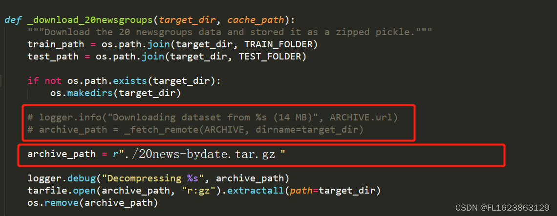 打开twenty_newsgroups.py文件(在fetch_20newsgroups函数名上,右键转到定义即可找到)