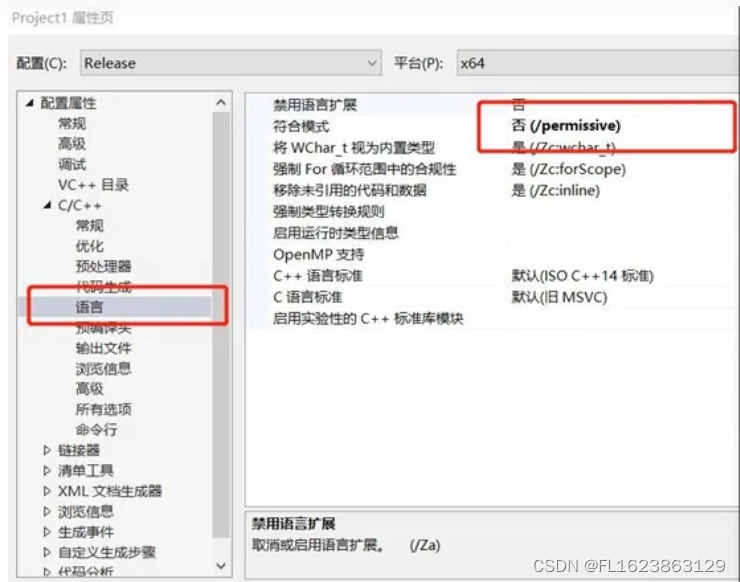 这个时候,主要的是看报错,根据报错,去网上寻找解决办法。因为这个时候,代码可能并没有任何错误,只不过你是VS2022,老师是VS2017或者其他版本。不同的版本之间代码运行问题,如果你换成cplex12.10这个版本一般不会有这个错误。这个时候 需要将 语言符合模式 由”是“ 改为” 否“