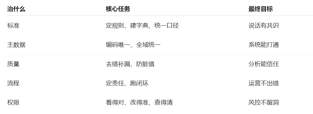 数据治理,治的不是“数据本身”,而是治企业在用数据过程中,标准不统一、职责不清晰、流程不闭环、系统不协同的问题。