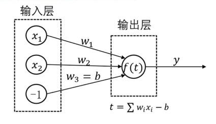这个偏置项也算是一个节点,称为偏置节点,只是输入和权重固定,所以还是可以表达为之前的公式: