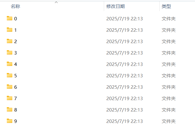 save_images(test_data, 'test')上述代码用于加载数字图片数据集和标注集,并保存到本地,标注集包括0-9,共十个数字