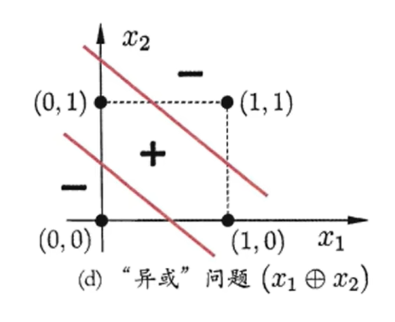 上述结构为单层神经网络,能够解决简单的分类问题,但在处理线性不可分问题时,无法通过简单训练实现收敛,或者无法学习复杂的非线性关系。