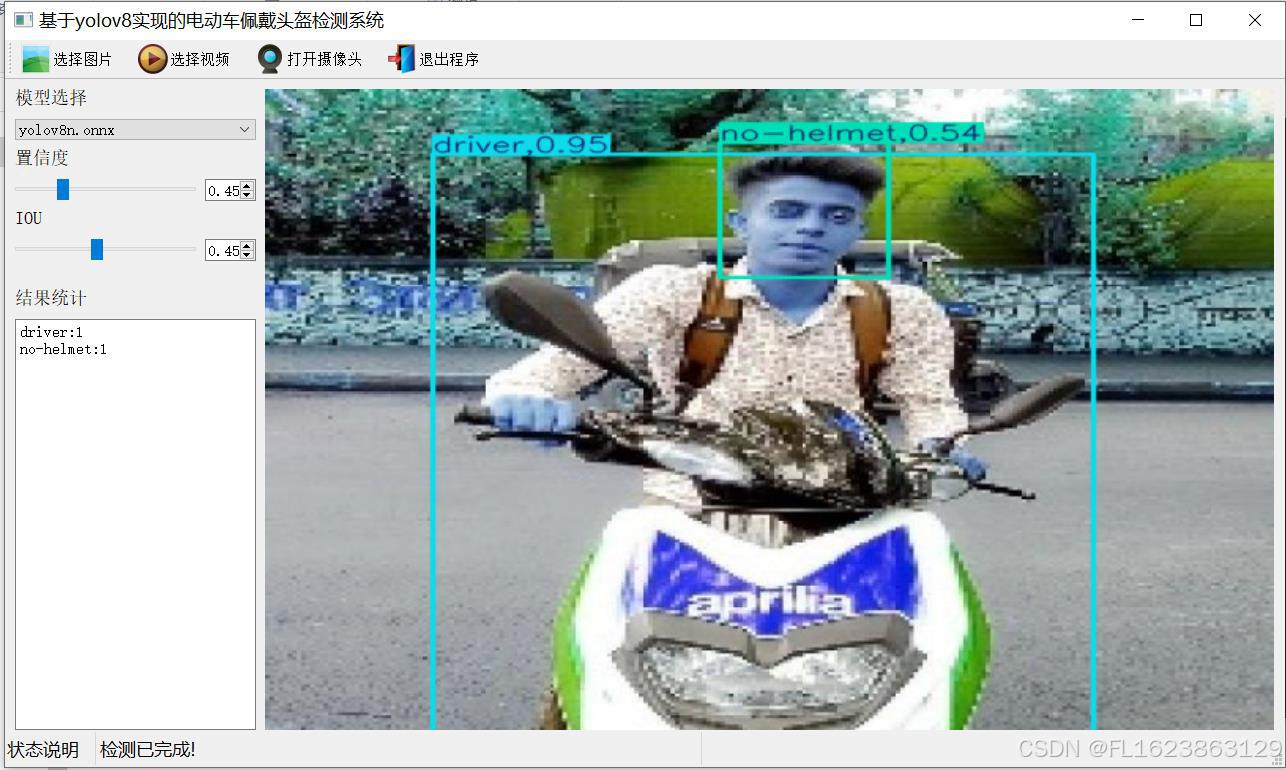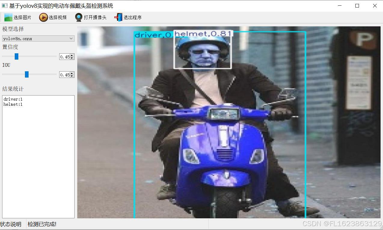 此外,该系统还具备用户友好的界面,能够直观展示检测结果和相关信息,如检测耗时、目标数量等,便于用户监控和管理。基于YOLOv8的电动车佩戴头盔检测系统不仅提升了骑行安全,也为智能交通系统的发展提供了新的技术支持。
