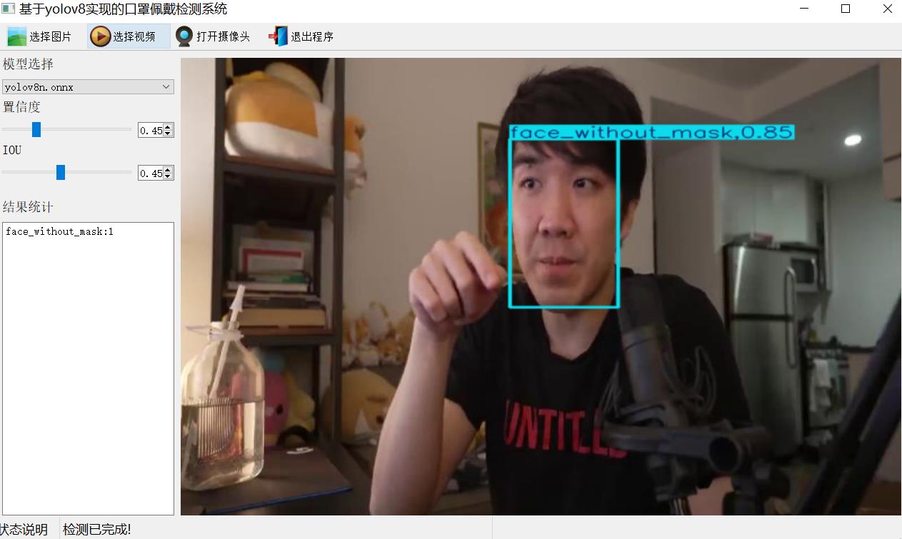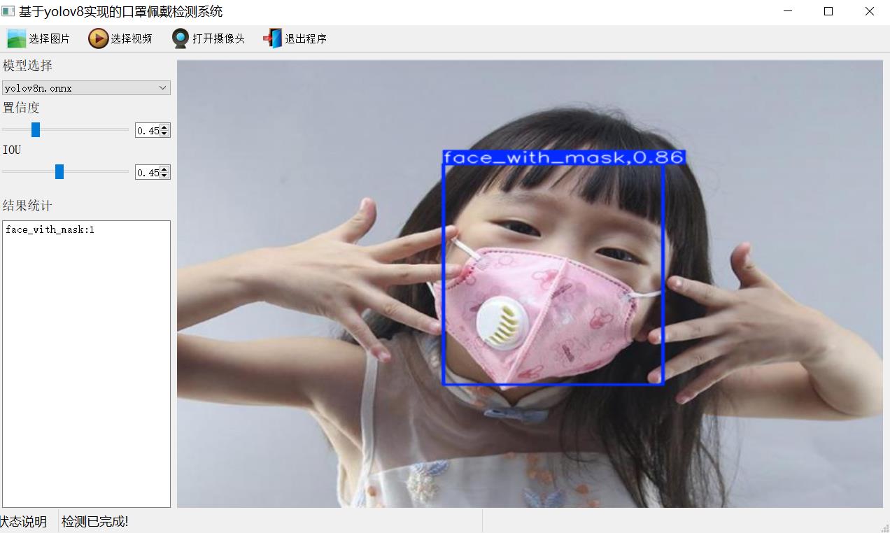 此外,该系统还支持图片、视频以及实时摄像头等多种输入方式,检测结果可以实时显示并保存,方便后续分析和处理。其界面简洁友好,操作便捷,适用于各种场景下的口罩佩戴检测需求。