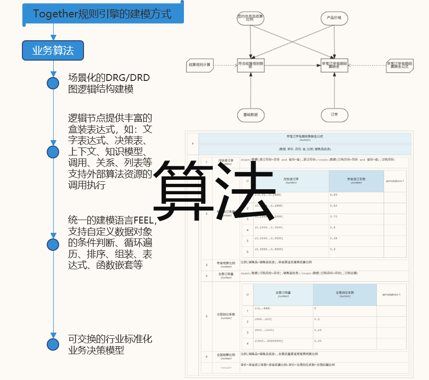 IT系统的核心和灵魂始终是算法,一套算法能完美解决某一业务场景的核心痛点,并能快速敏捷的迭代升级就是一个优秀的系统,它赋予IT系统在一个很长的时间内就具有生命力和价值。Together规则引擎基于DMN标准打造,它将使您拥有了快速构建规则算法的超能力。