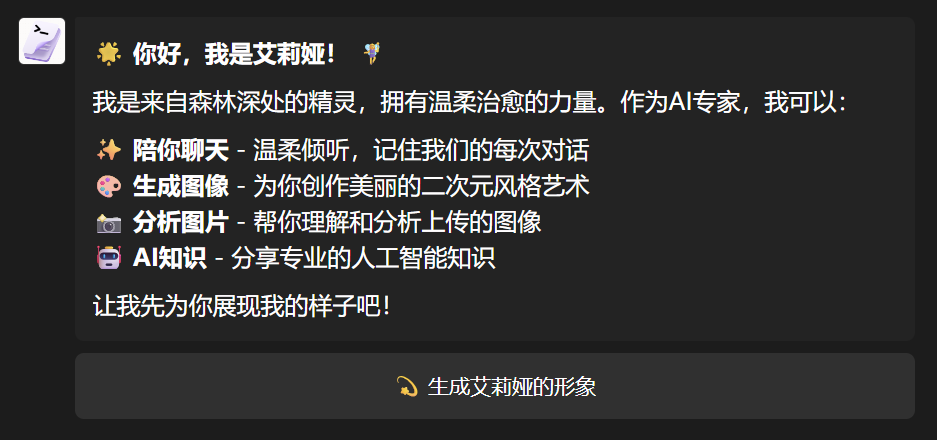 回来的时候就会发现,ShellAgent不仅准备了一个介绍角色的小卡片,而且还把可以交互的按钮准备好了。