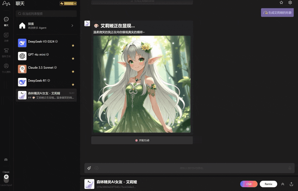 最后,我们再点击一下右上角的「部署」,就可以和自己定制的「AI女友」互动啦!
