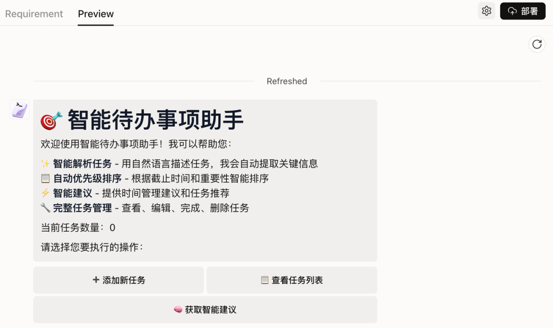 比如,要求是打造一个会话内待办助手,具备时间管理建议、任务分解建议等功能。