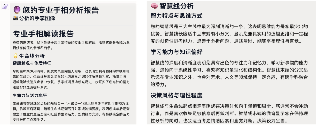 既然是「赛博算命」,怎么能少了「看掌纹」这个环节。