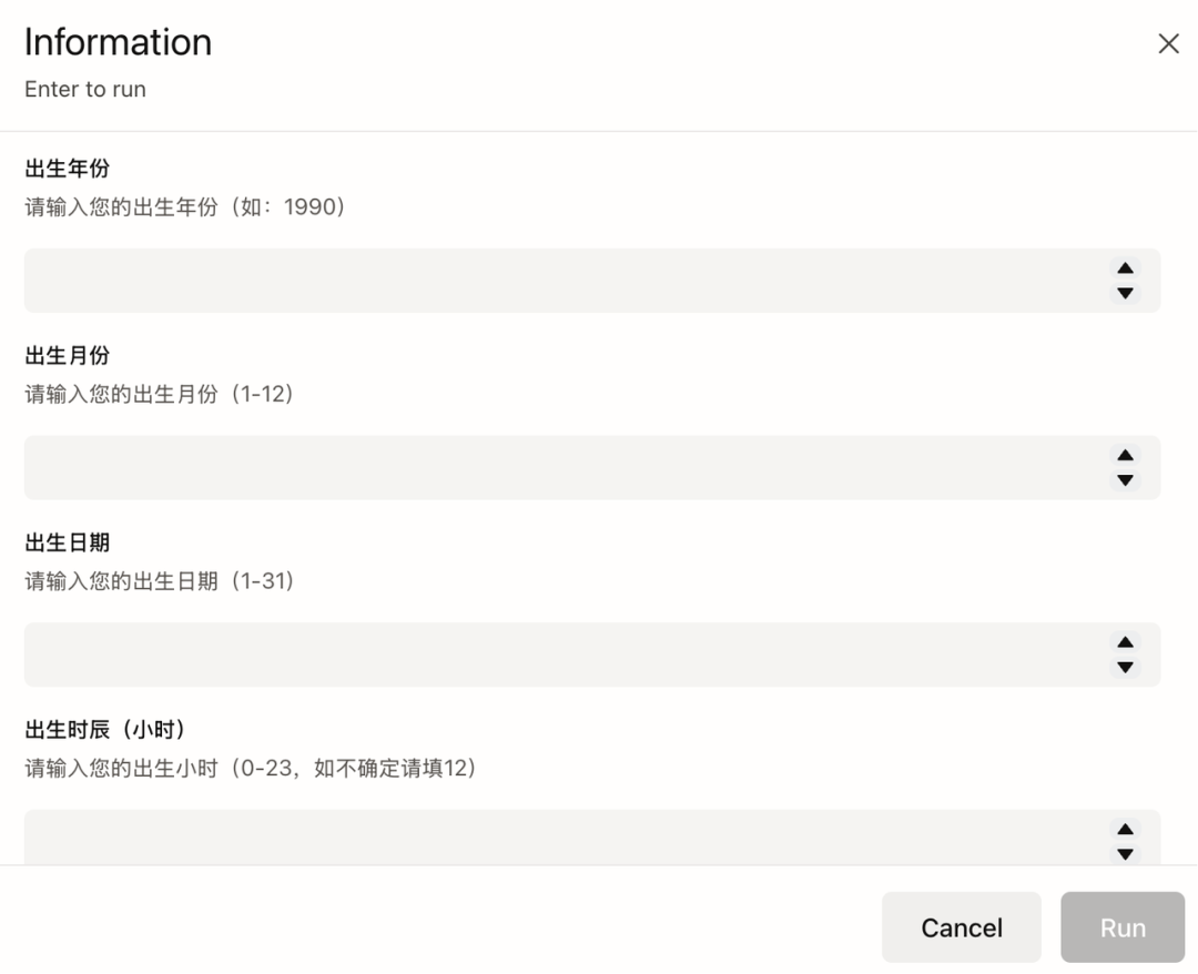 根据ShellAgent自动生成的「信息收集表」,填入出生年月和出生地点就可以了。