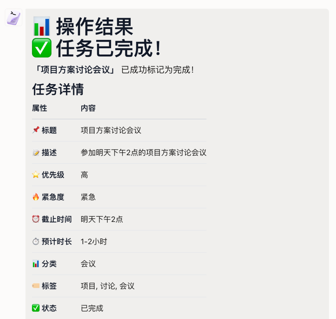 若是完成了其中一项,直接告诉其任务编号,AI助手就帮我们打勾了。