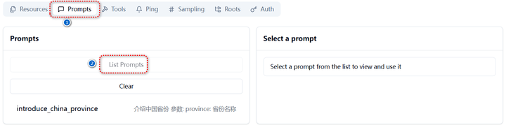 点击 Prompts 下的 List Prompts,列出全部 Prompts: