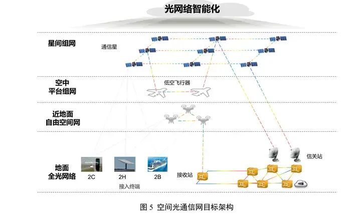 空间光通信网:构建 “星 - 空 - 地” 多平台协同网络,依托大气湍流补偿等技术。