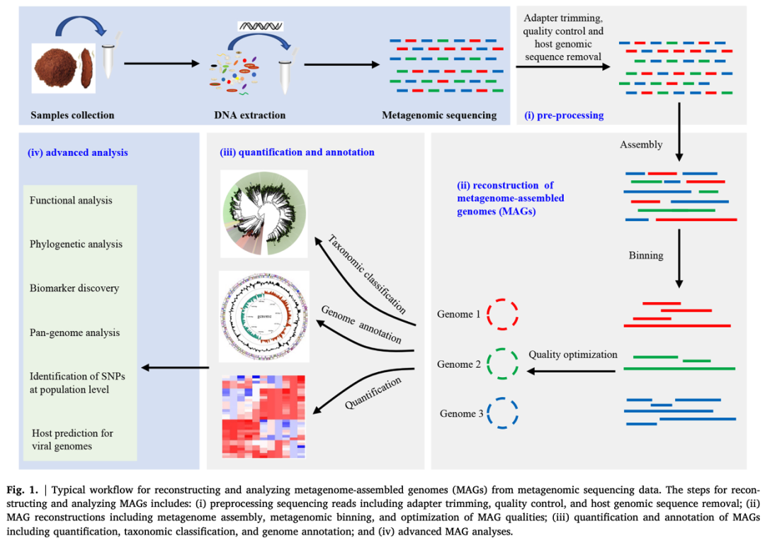 Zhou Y, Liu M, Yang J. Recovering metagenome-assembled genomes from shotgun metagenomic sequencing data: Methods, applications, challenges, and opportunities. Microbiol Res. 2022 Jul;260:127023. doi: 10.1016/j.micres.2022.127023. Epub 2022 Apr 8. PMID: 35430490.