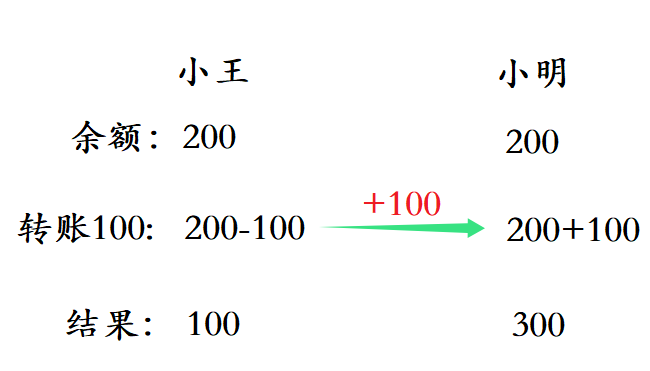 在生活中,我们经常会转账给别人。以下举例,小王和小明的钱包余额均为200元,这时小王要转账给小明100元,这种操作必须两个要么一起成功,要么一起失败。否则结果可能会导致,小王转账成功了,而小明接收转账失败了,这种情况就是导致金钱丢失。为了避免这种情况,我们就需要将这一组SQL语句打包成一个整体,也就是放在事务中,利用事务的特性性来保证该操作过程要么全部成功,要么全部失败。
