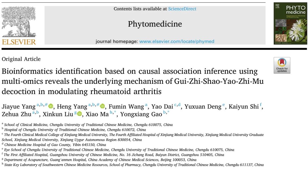 今天分享一篇中医药相关的纯生信文章。没有测序也没有湿实验,只分析公共数据库的数据发表在了Phytomedicine上。我们来看他是做了什么工作。