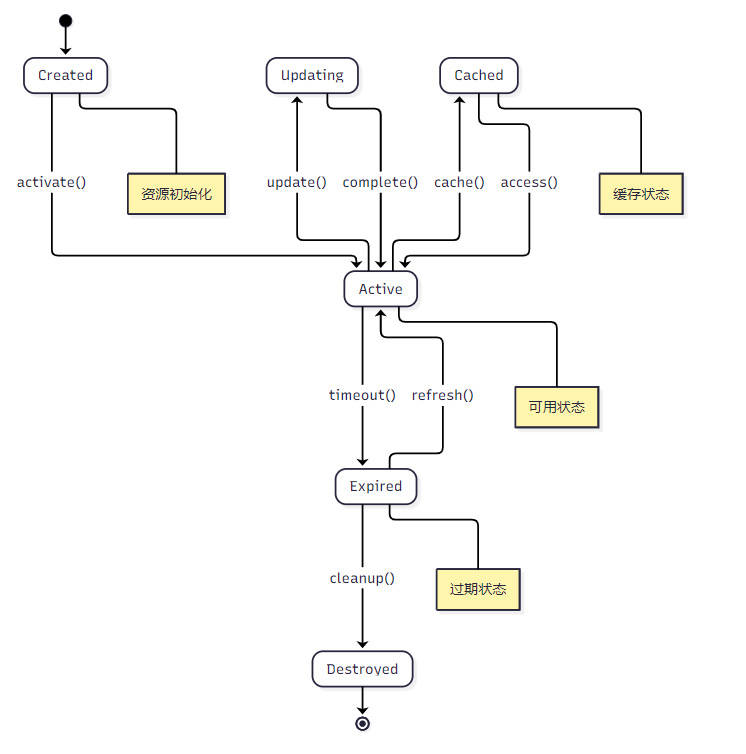资源生命周期管理是MCP系统稳定运行的基础,包含创建、激活、更新、缓存、失效和销毁六个关键阶段。
