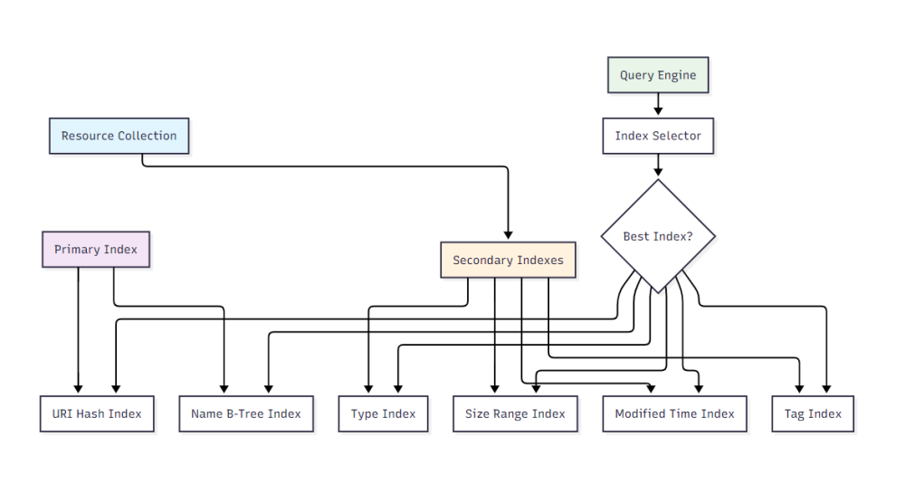 class IndexManager { private indexes = new Map<string, Index>(); private queryOptimizer: QueryOptimizer; constructor() { this.queryOptimizer = new QueryOptimizer(this); this.initializeIndexes(); } private initializeIndexes(): void { // 主键索引 this.indexes.set('uri', new HashIndex('uri')); this.indexes.set('name', new BTreeIndex('name')); // 二级索引 this.indexes.set('type', new HashIndex('type')); this.indexes.set('size', new RangeIndex('size')); this.indexes.set('modified', new RangeIndex('modified')); this.indexes.set('tags', new InvertedIndex('tags')); } async buildIndex(indexName: string, resources: MCPResource[]): Promise<void> { const index = this.indexes.get(indexName); if (!index) { throw new Error(`Index ${indexName} not found`); } console.log(`Building index ${indexName} for ${resources.length} resources`); const startTime = Date.now(); await index.build(resources); const buildTime = Date.now() - startTime; console.log(`Index ${indexName} built in ${buildTime}ms`); } async optimizeQuery(query: ResourceQuery): Promise<OptimizedQuery> { return this.queryOptimizer.optimize(query); } async search(query: OptimizedQuery): Promise<string[]> { const bestIndex = this.selectBestIndex(query); return bestIndex.search(query); } private selectBestIndex(query: OptimizedQuery): Index { // 索引选择算法 let bestIndex: Index | null = null; let bestScore = 0; for (const [name, index] of this.indexes) { const score = this.calculateIndexScore(index, query); if (score > bestScore) { bestScore = score; bestIndex = index; } } return bestIndex || this.indexes.get('uri')!; } private calculateIndexScore(index: Index, query: OptimizedQuery): number { let score = 0; // 基于查询条件计算分数 if (query.filters) { for (const filter of query.filters) { if (index.supportsField(filter.field)) { score += filter.selectivity * 10; } } } // 基于索引类型调整分数 if (index instanceof HashIndex && query.exactMatch) { score *= 2; } else if (index instanceof RangeIndex && query.rangeQuery) { score *= 1.5; } return score; } } // 不同类型的索引实现 class HashIndex implements Index { private index = new Map<string, Set<string>>(); constructor(private field: string) {} async build(resources: MCPResource[]): Promise<void> { this.index.clear(); for (const resource of resources) { const value = this.extractValue(resource, this.field); if (value !== undefined) { if (!this.index.has(value)) { this.index.set(value, new Set()); } this.index.get(value)!.add(resource.uri); } } } async search(query: OptimizedQuery): Promise<string[]> { const results = new Set<string>(); for (const filter of query.filters || []) { if (filter.field === this.field && filter.operator === 'equals') { const uris = this.index.get(filter.value); if (uris) { uris.forEach(uri => results.add(uri)); } } } return Array.from(results); } supportsField(field: string): boolean { return field === this.field; } } class RangeIndex implements Index { private sortedEntries: Array<{ value: any; uris: Set<string> }> = []; constructor(private field: string) {} async build(resources: MCPResource[]): Promise<void> { const valueMap = new Map<any, Set<string>>(); for (const resource of resources) { const value = this.extractValue(resource, this.field); if (value !== undefined) { if (!valueMap.has(value)) { valueMap.set(value, new Set()); } valueMap.get(value)!.add(resource.uri); } } this.sortedEntries = Array.from(valueMap.entries()) .map(([value, uris]) => ({ value, uris })) .sort((a, b) => a.value - b.value); } async search(query: OptimizedQuery): Promise<string[]> { const results = new Set<string>(); for (const filter of query.filters || []) { if (filter.field === this.field) { const matchingEntries = this.findInRange(filter); matchingEntries.forEach(entry => { entry.uris.forEach(uri => results.add(uri)); }); } } return Array.from(results); } private findInRange(filter: QueryFilter): Array<{ value: any; uris: Set<string> }> { switch (filter.operator) { case 'greater_than': return this.sortedEntries.filter(entry => entry.value > filter.value); case 'less_than': return this.sortedEntries.filter(entry => entry.value < filter.value); case 'between': return this.sortedEntries.filter( entry => entry.value >= filter.value[0] && entry.value <= filter.value[1] ); default: return []; } } }