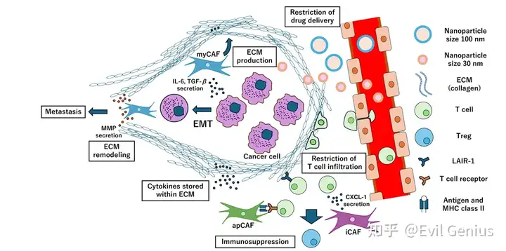 ✓ 肿瘤血管可允许100nm颗粒通过 ✓ 但ECM富集肿瘤核心区仅允许≤30nm颗粒有效渗透 ✓ 常规脂质体制剂直径约100nm,导致其穿透血管后仍无法深入肿瘤组织
