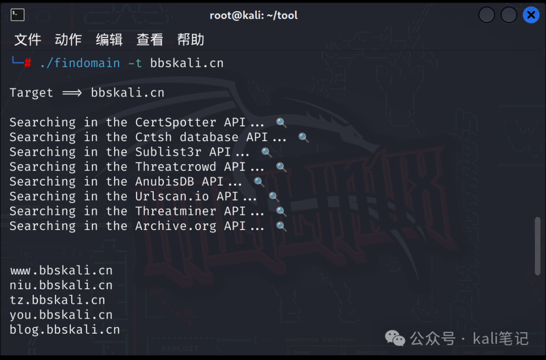 findomain -t bbskali.cn