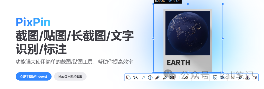 是一款比较新鲜的截图工具,拥有截图、贴图、截长图、截动图、OCR 文字识别几个功能,界面与 QQ 截图类似。但是相比之下有以下亮点。