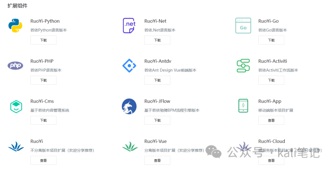 相对而言,RuoYi的生态系统还是比较多的。