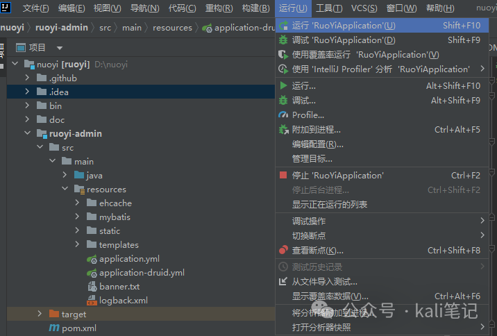 (数据库文件在源码中) 修改文件ruoyi-admin/src/main/resources/application-druid.yml