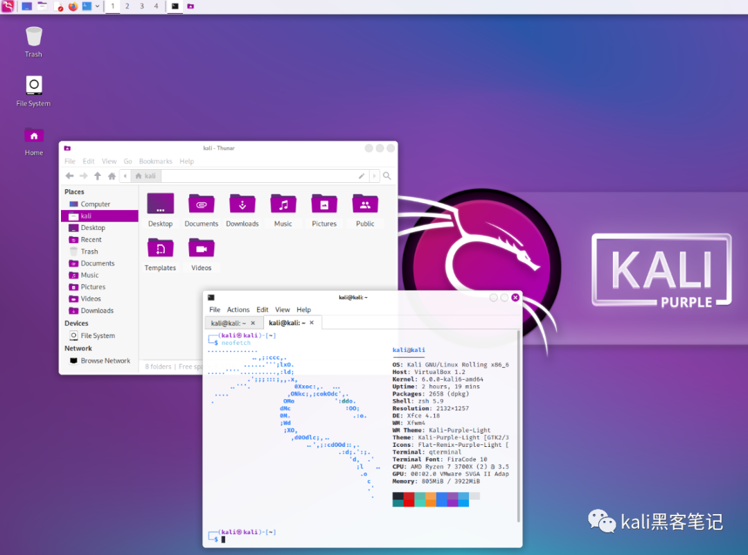 等工具。对于新版kali Purple 在安装和使用中都增加了紫色
