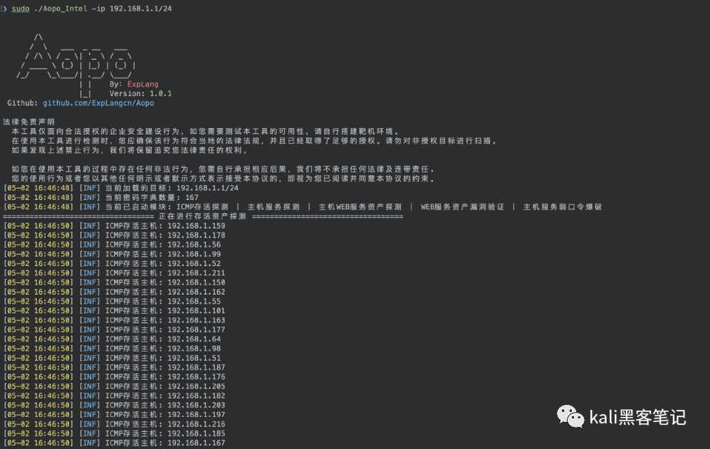 扫描内网全部资产 (默认探测:10 A段|172 A段|192 B段)